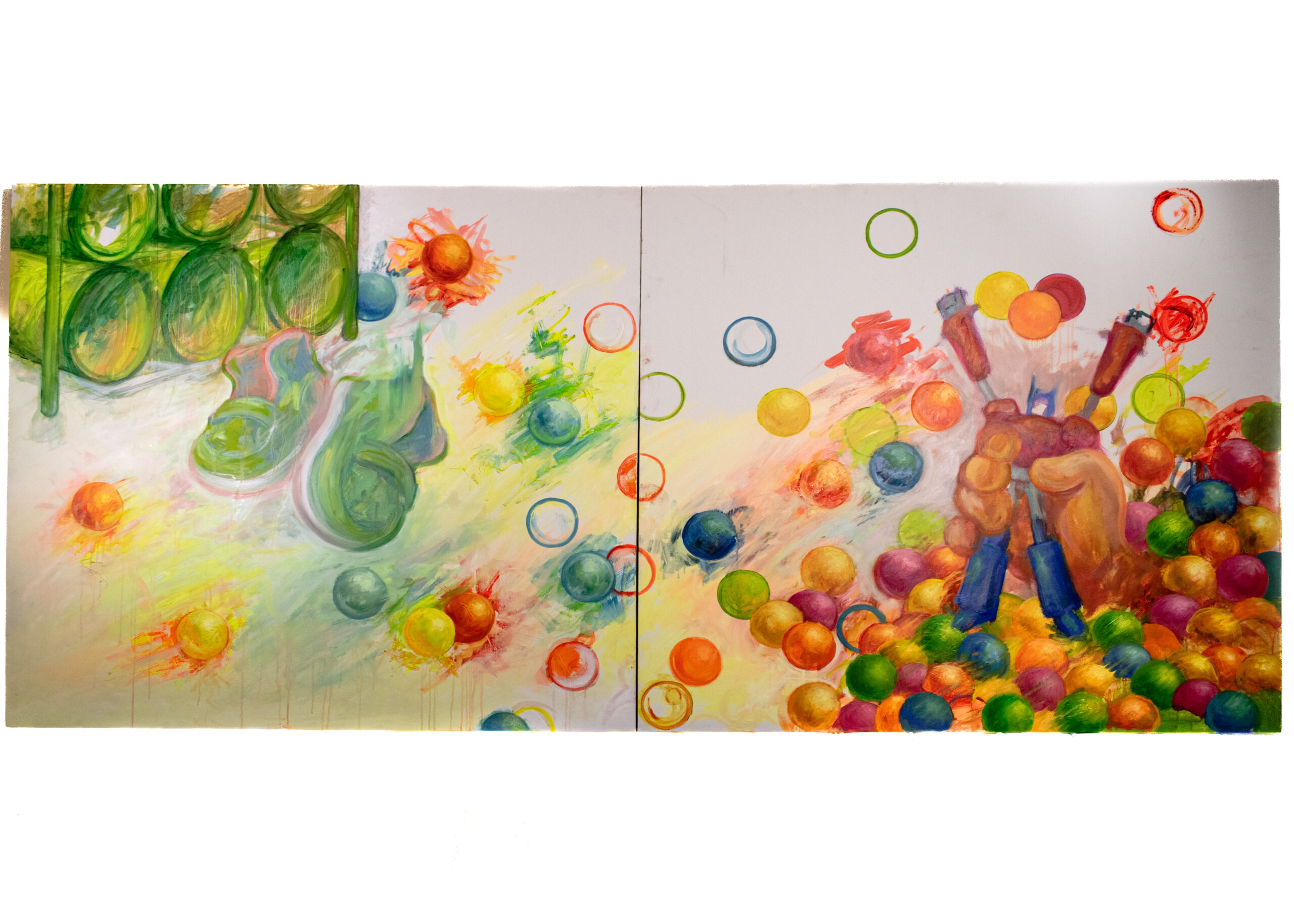 Me hubiera gustado jugar contigo de niñx es una instalación interactiva de Allie Pori y Jox que entiende el juego como herramienta emancipatoria y motor de lo comunitario. Mediante un libro de colorear a gran escala, bloques de construcción entrelazables, pinturas sobre la infancia y un video que introduce lo lúdico en la adultez, la exposición recrea un patio de juegos e invita a repensar la ternura y la fantasía como ejes fundamentales de la vida cotidiana.