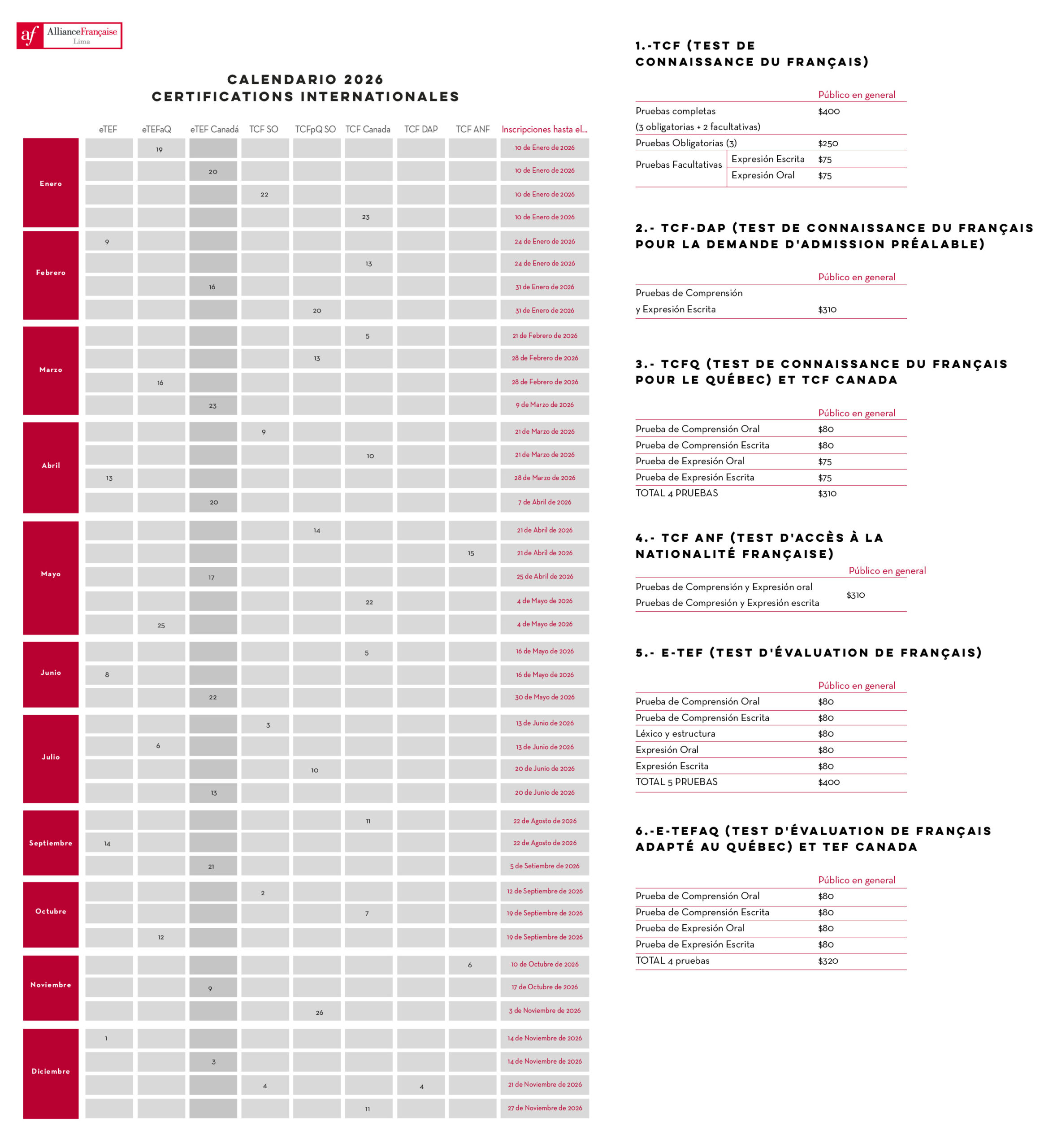 La Alianza Francesa es el único centro de exámenes oficiales en el Perú acreditado por la Embajada de Francia. Nuestra oficina de exámenes internacionales centraliza la organización de las sesiones del Ministerio de Educación de Francia.